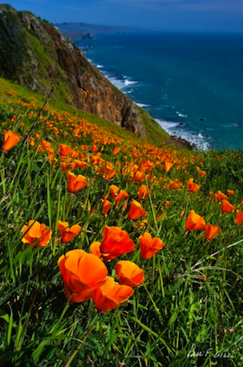 Nature photographer Paul F. Gill’s California Poppy Sonoma Coast was taken on a spring day on the Sonoma Coast. It was taken on a wild section of the coast. A steep and rugged section, you probably must be a local to know where it is located.